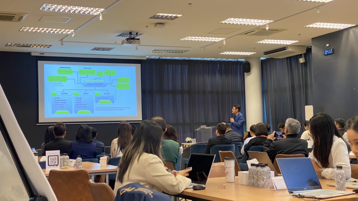 A keynote presentation on the conceptual foundations of public-transport low-carbon policy by Associate Professor Dr. Poon Tiangburunthanam (Deputy Director – Strategy & Planning, AREA Fund)