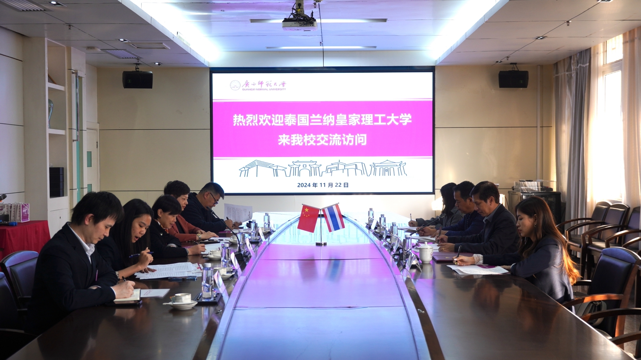 At the international level, the Faculty of Fine Arts and Architecture participated in multiple cross-border collaborations. Between December 18–20, 2024, RMUTL joined Souphanouvong University, Luang Prabang, Lao People’s Democratic Republic (Lao PDR) in the joint master planning and design workshop for the Tai Lue Textile Learning Center and Souvenir Market at Ban Phanom Village, Lao PDR. The project involved local authorities, cultural heritage experts, and business representatives, promoting regional cooperation in cultural heritage conservation and sustainable tourism development. Additionally, on November 22, 2024, RMUTL’s executive and academic representatives met with Guangxi Normal University, China, to discuss academic exchange, curriculum development, and joint research, enhancing cross-sectoral dialogue and international academic partnerships for sustainable education. Moreover, RMUTL’s Fashion, Textile, and Jewelry Design programshowcased designs at the 13th Thai Silk Fair (August 31, 2024), where students created traditional Thai silk outfits for international delegates — promoting Thai craftsmanship on the global stage.
