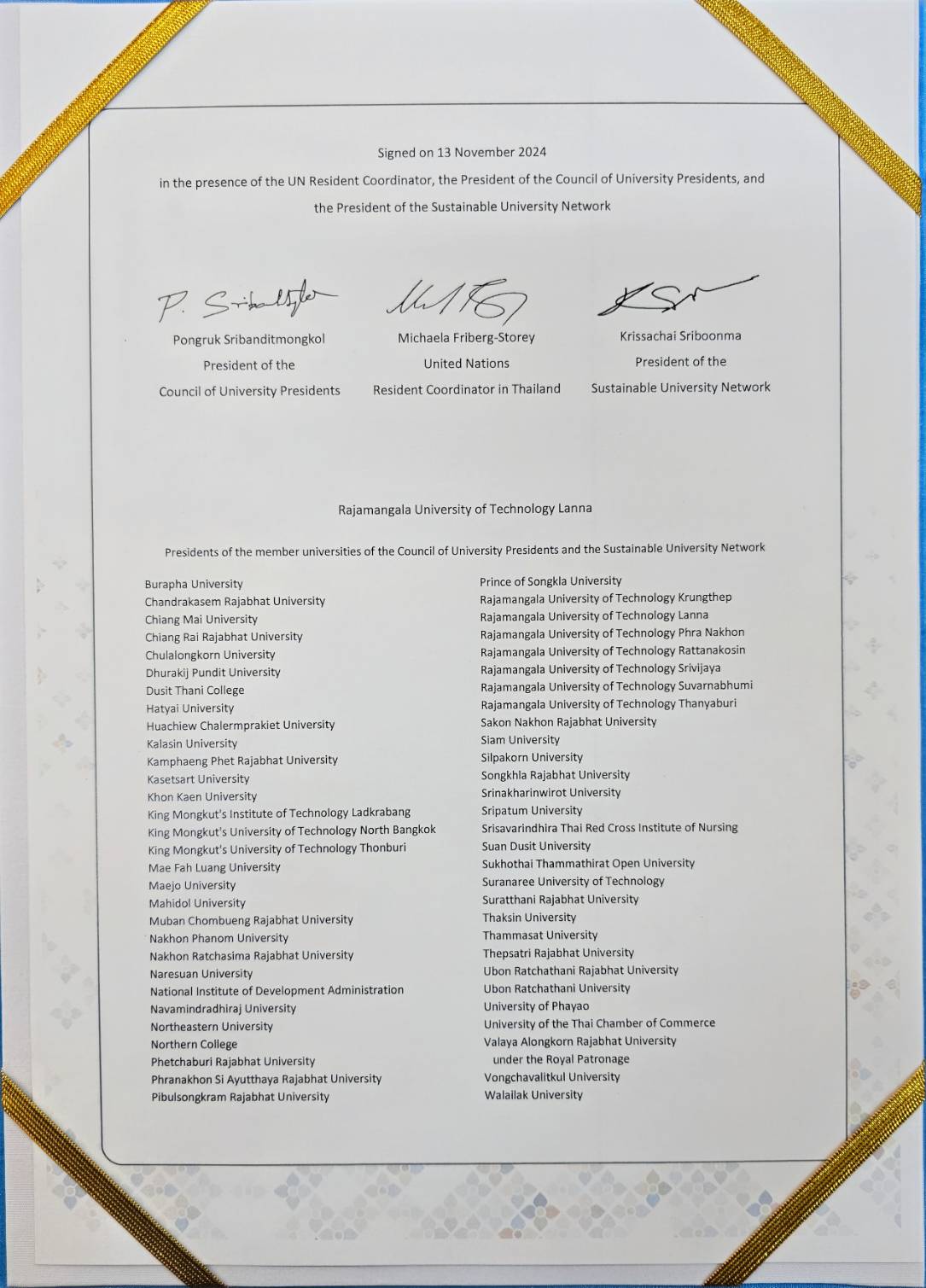 Rajamangala University of Technology Lanna (RMUTL), as a proud member of the Sustainable University Network of Thailand (SUN Thailand), continues to strengthen its commitment to the United Nations Sustainable Development Goals (SDGs)—particularly SDG 17: Partnerships for the Goals.