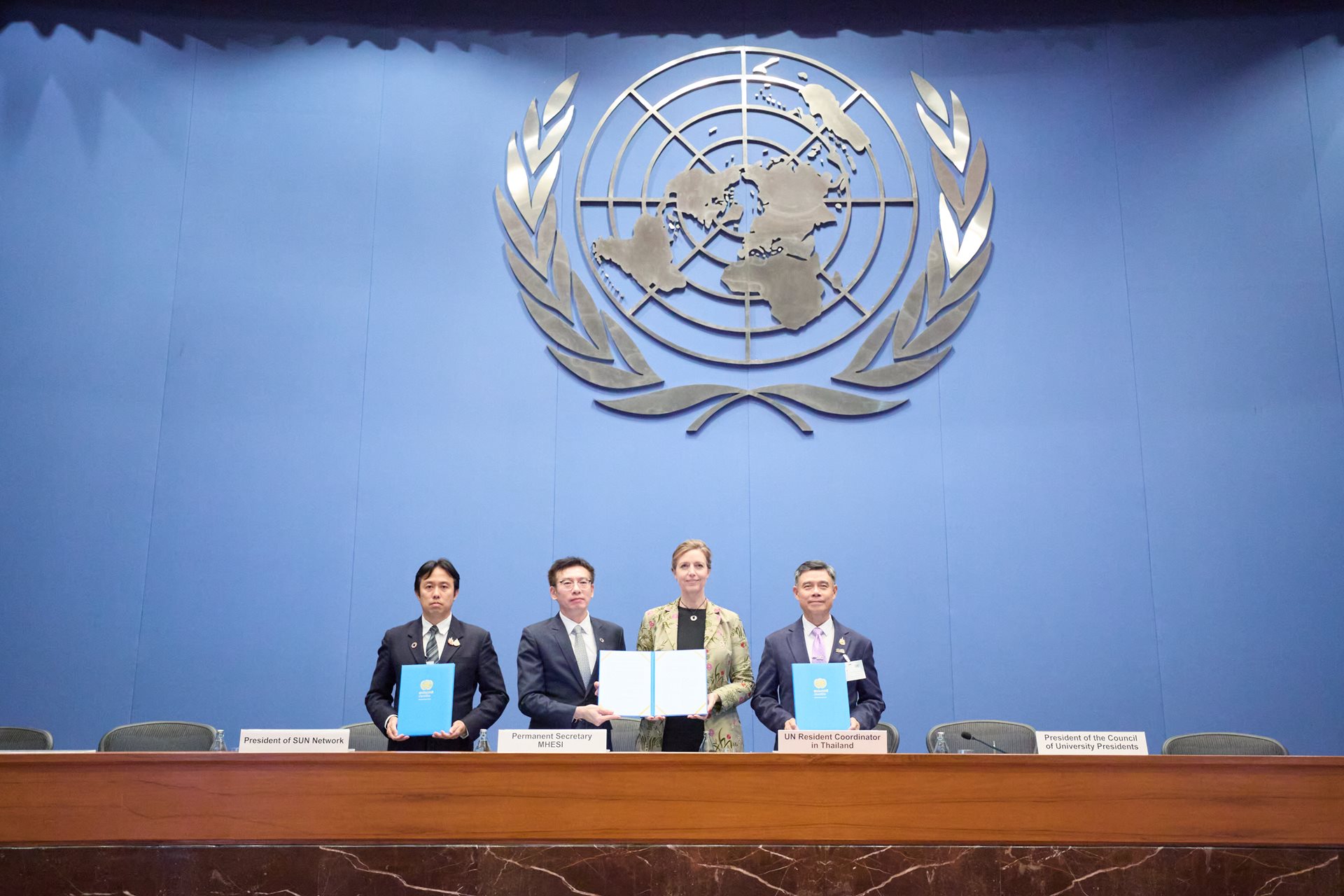 This year, RMUTL reaffirmed its dedication to sustainable collaboration by participating in the signing ceremony of the Declaration of Intent for Sustainable Development at the United Nations Headquarters, Thailand, located on Ratchadamnoen Nok Road, Bangkok. The event brought together universities and institutions nationwide to promote partnerships that drive collective progress toward sustainability.