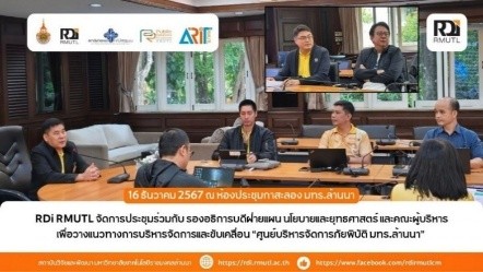 The Institute of Research and Development met with university executives to set the framework for the RMUTL Disaster Management Centre.