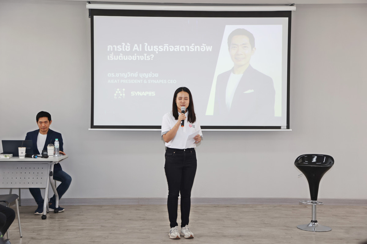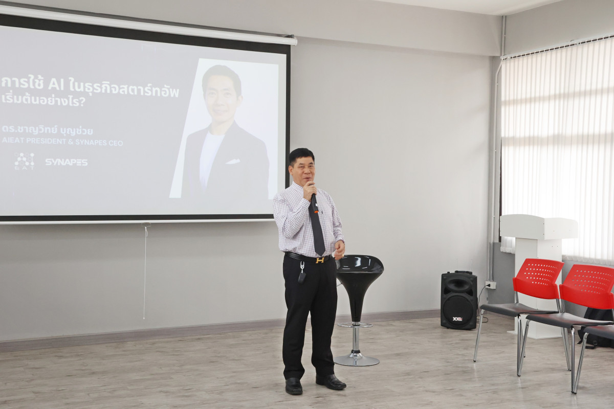 กิจกรรมเสวนาได้รับเกียรติจาก ผศ.ดร.ชาญวิทย์ บุญช่วย ผู้เชี่ยวชาญด้าน AI นายกสมาคมผู้ประกอบการปัญญาประดิษฐ์ไทย (AIEAT) อดีตอาจารย์ประจำคณะวิศวกรรมศาสตร์ มทร.รัตนโกสินทร์ และผู้ประกอบการสตาร์ทอัพที่ประสบความสำเร็จ มาร่วมบรรยายและแบ่งปันประสบการณ์เกี่ยวกับการใช้ AI ในการพัฒนาธุรกิจ ตลอดจนกลยุทธ์ในการบริหารจัดการเพื่อให้ธุรกิจเติบโตได้อย่างมีประสิทธิภาพ