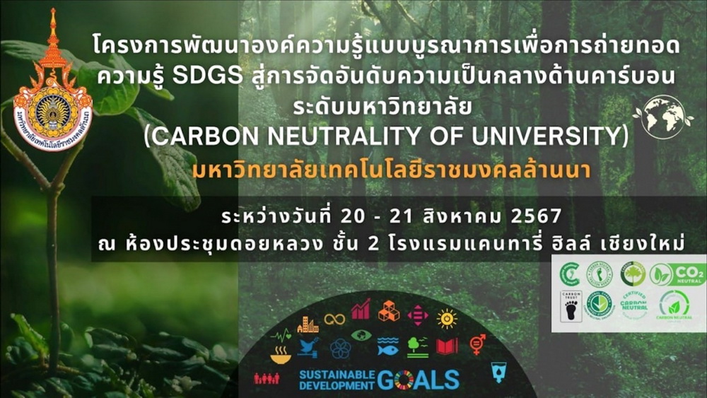 - Integrated Knowledge Development for SDGs Dissemination toward Carbon Neutrality University Ranking (Aug 20–21, 2024). Rajamangala University of Technology Lanna.